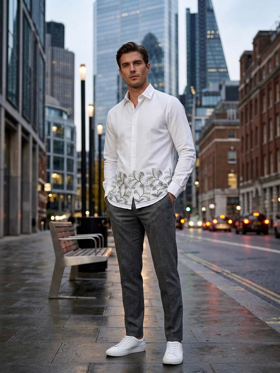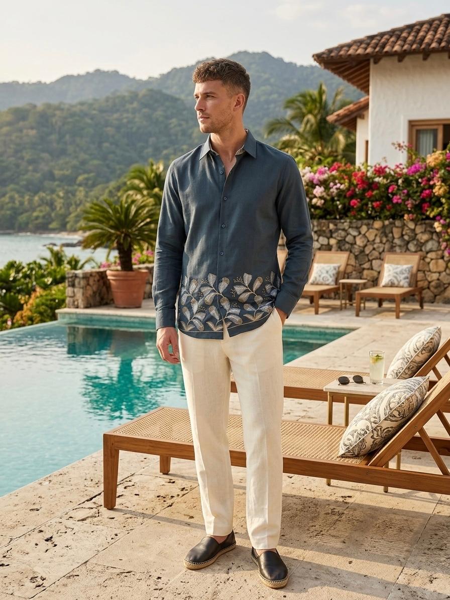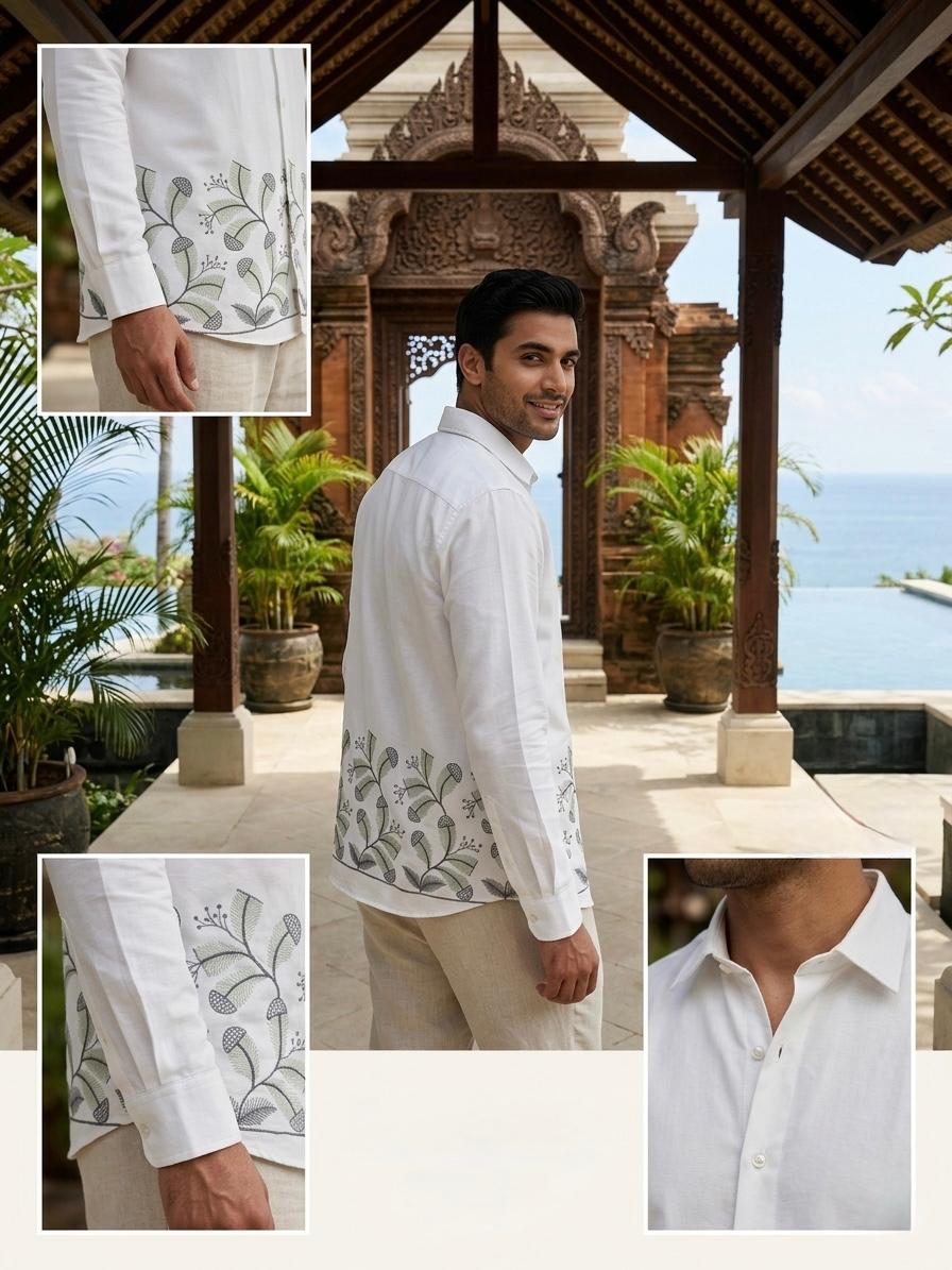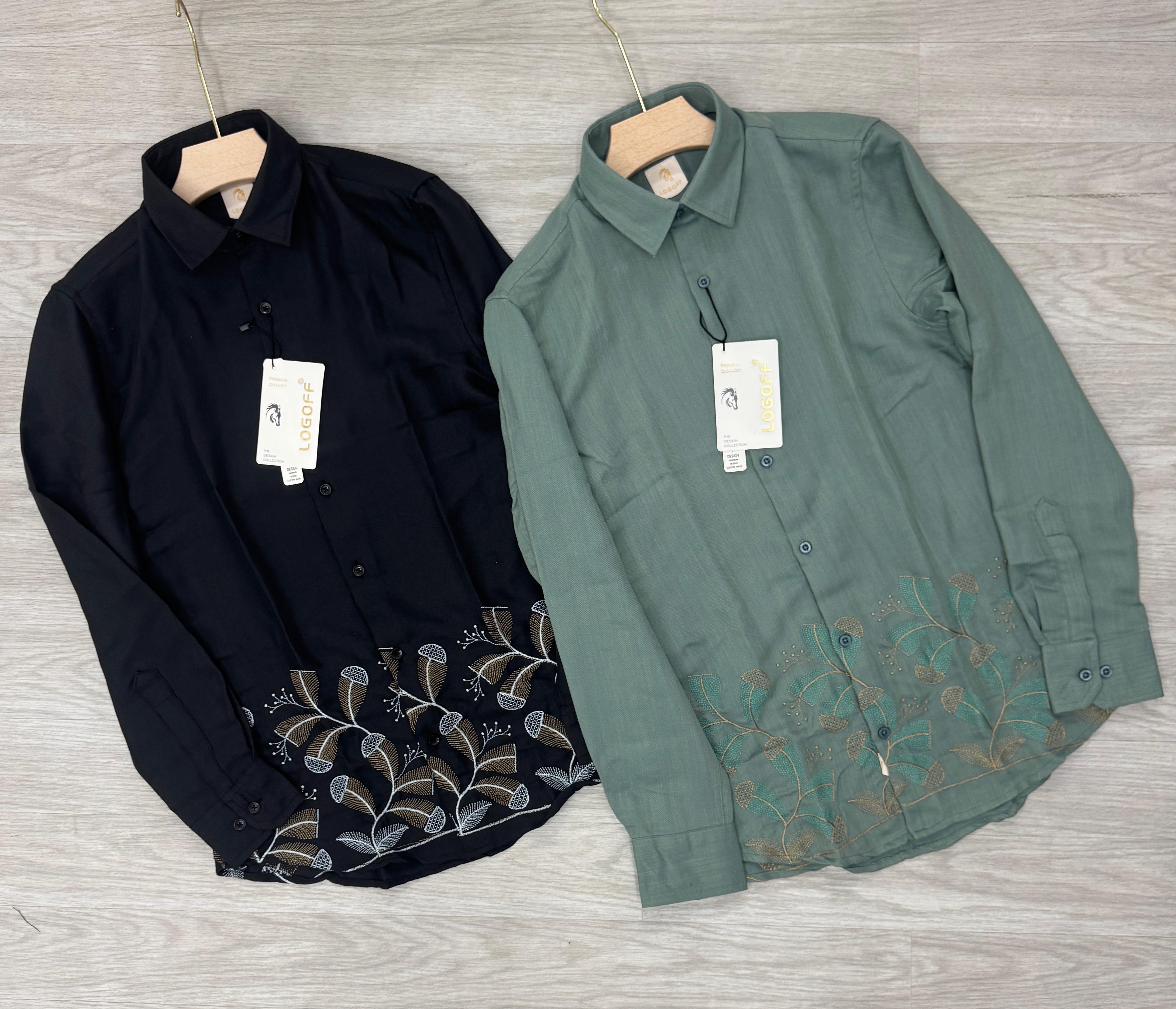 Imported linen look fabric with bottom embroidery shirt