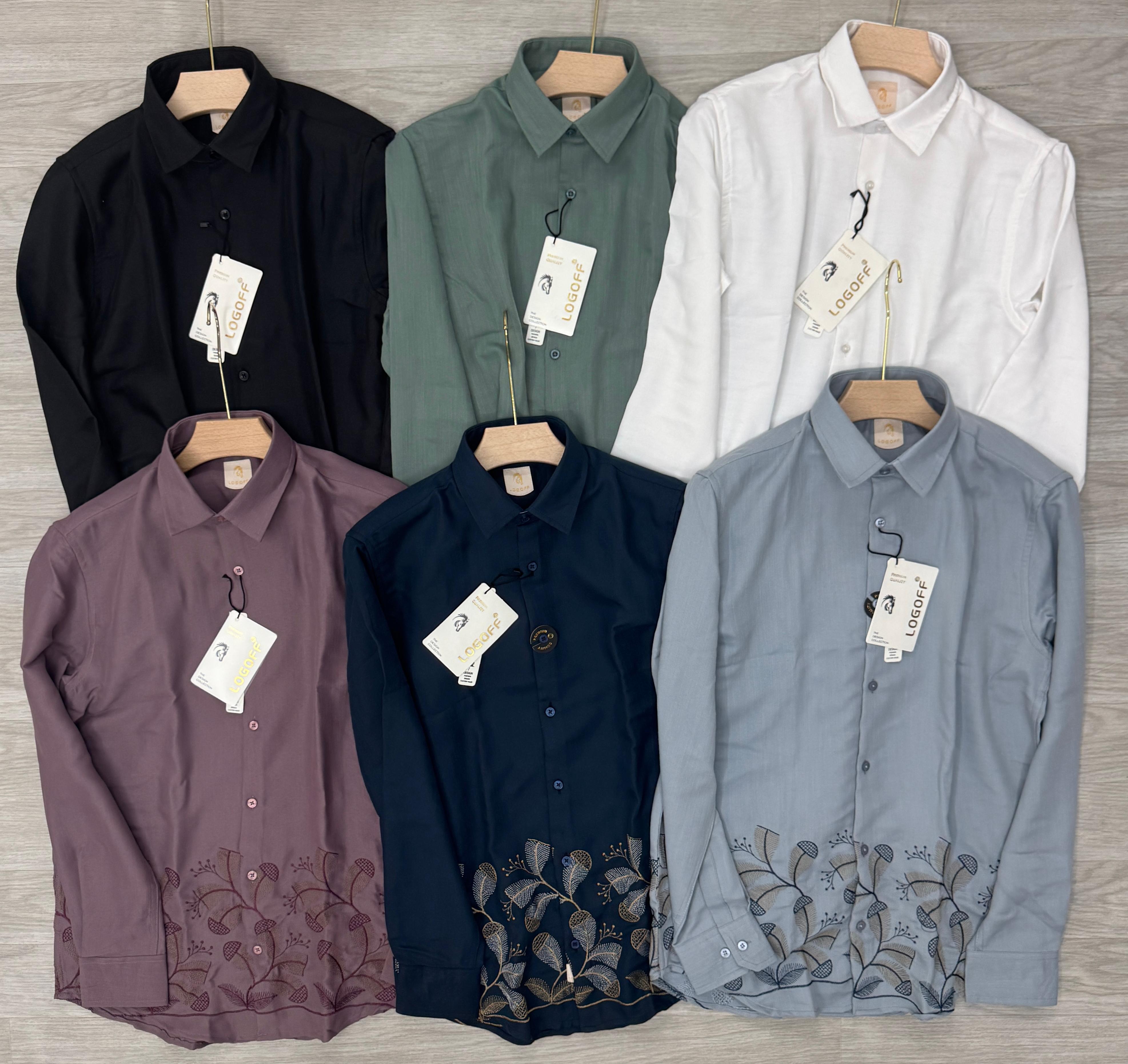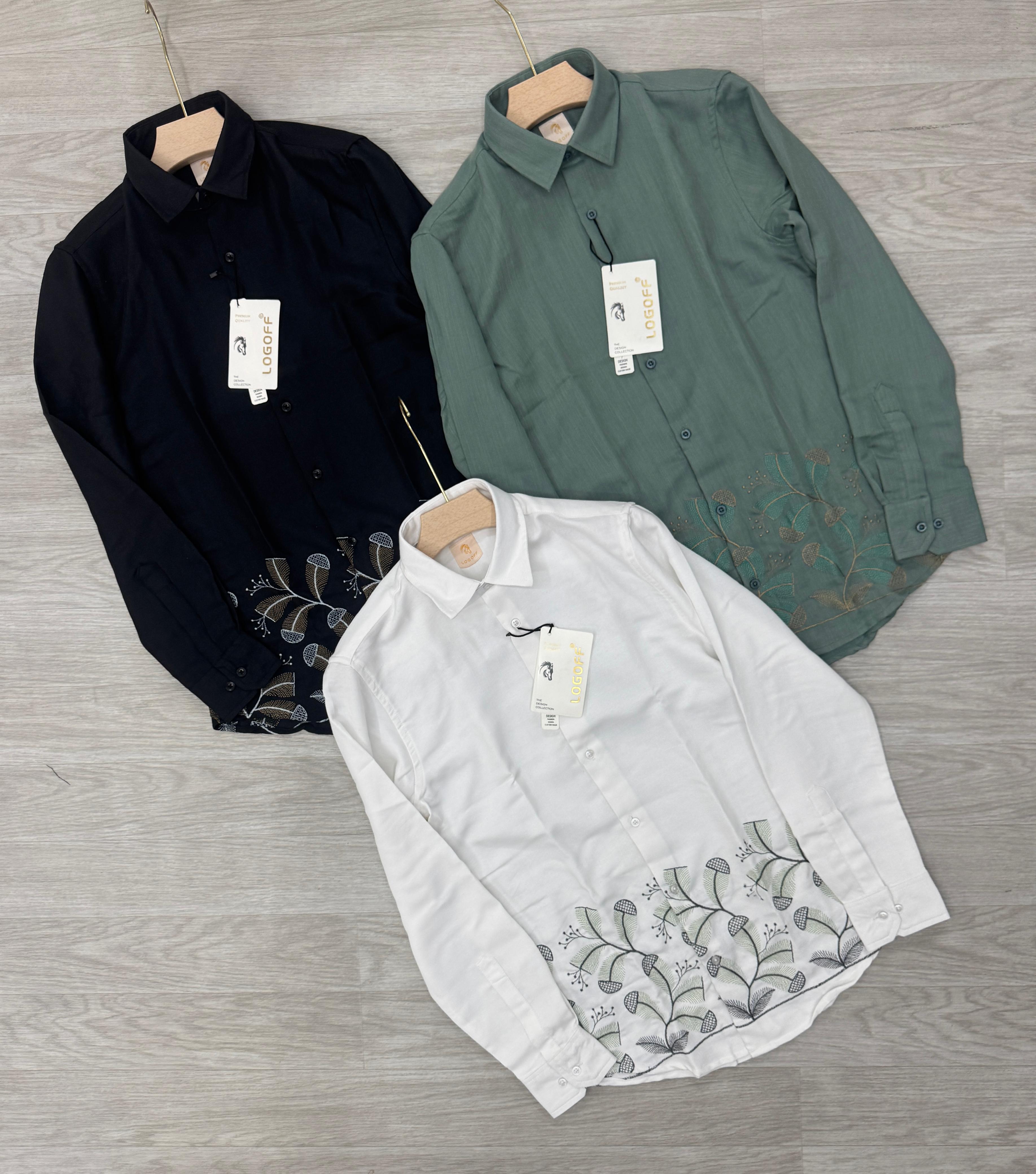 Imported linen look fabric with bottom embroidery shirt
