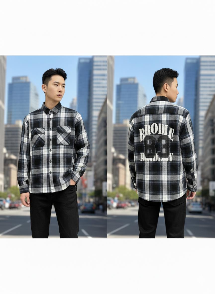 Beautiful grindle check Double pocket with back print baggy shirt premium quality 🤩🤩